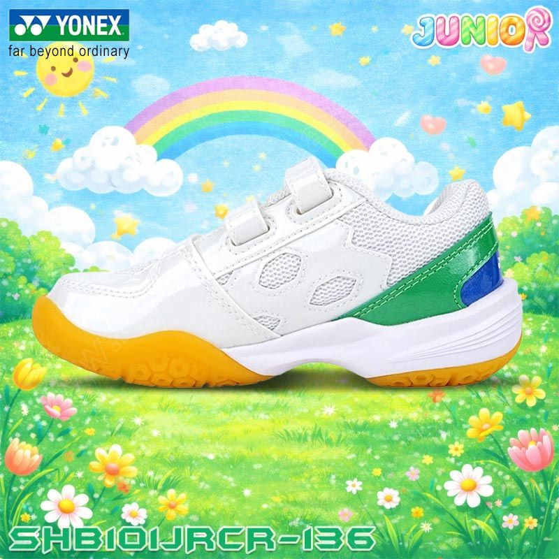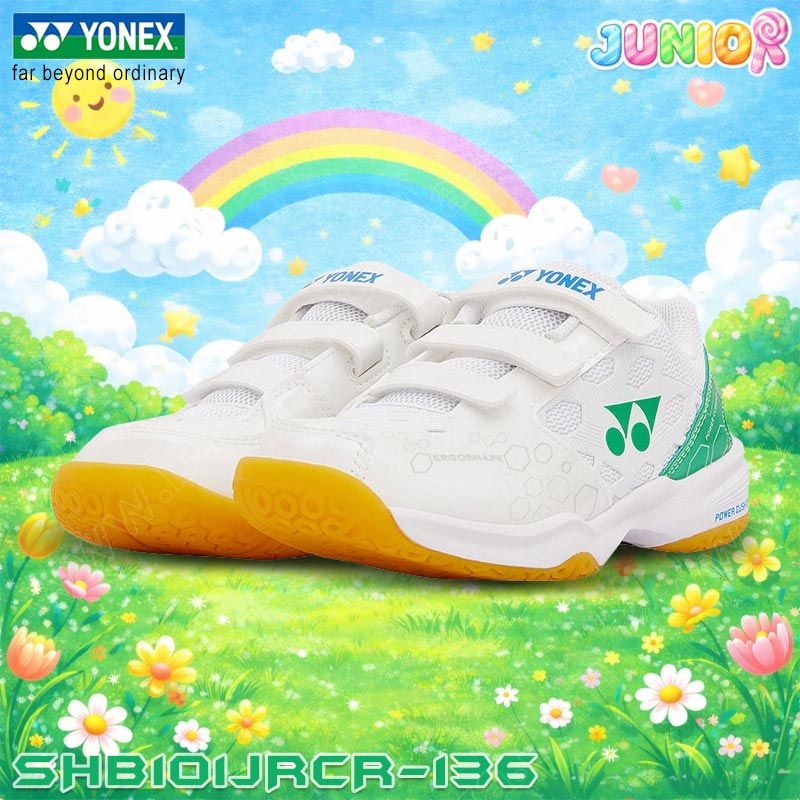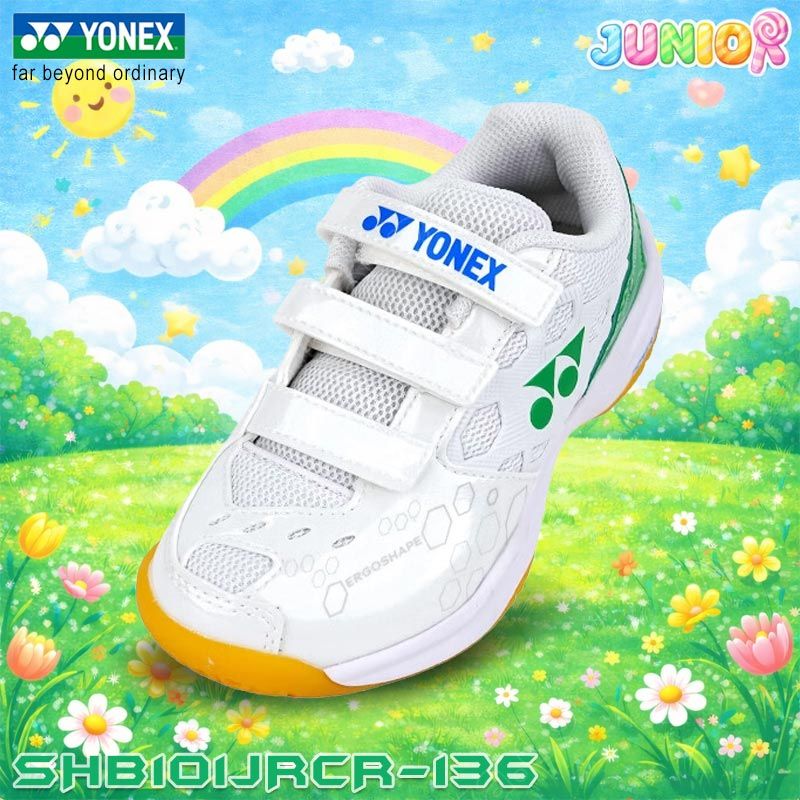 YONEX CUSHION 101 Junior Badminton Shoes White/Green (SHB101JRCR-136)